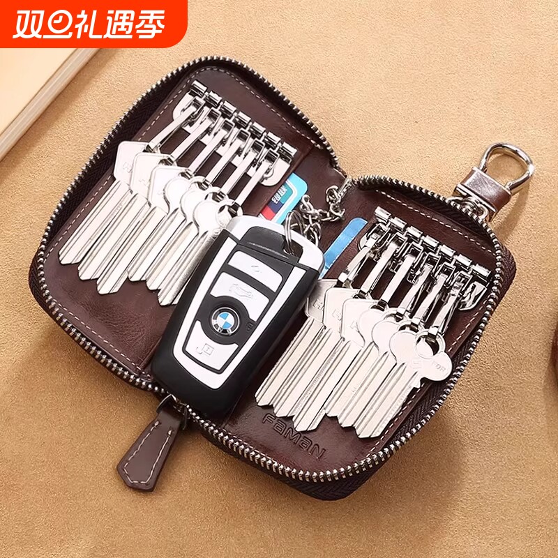 大容量钥匙包男女士真皮双层拉链家用汽车锁匙包收纳零钱包多功能