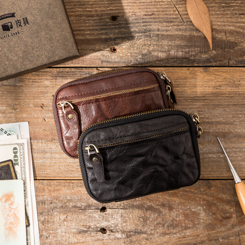 真皮简约拉链锁匙包男士腰挂多功能家用小包大容量牛皮女士钥匙包