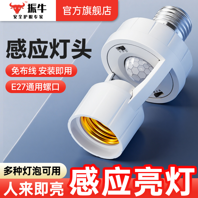 红外线人体感应灯智能灯头可调节灯座人走灯灭螺纹口楼梯过道庭院