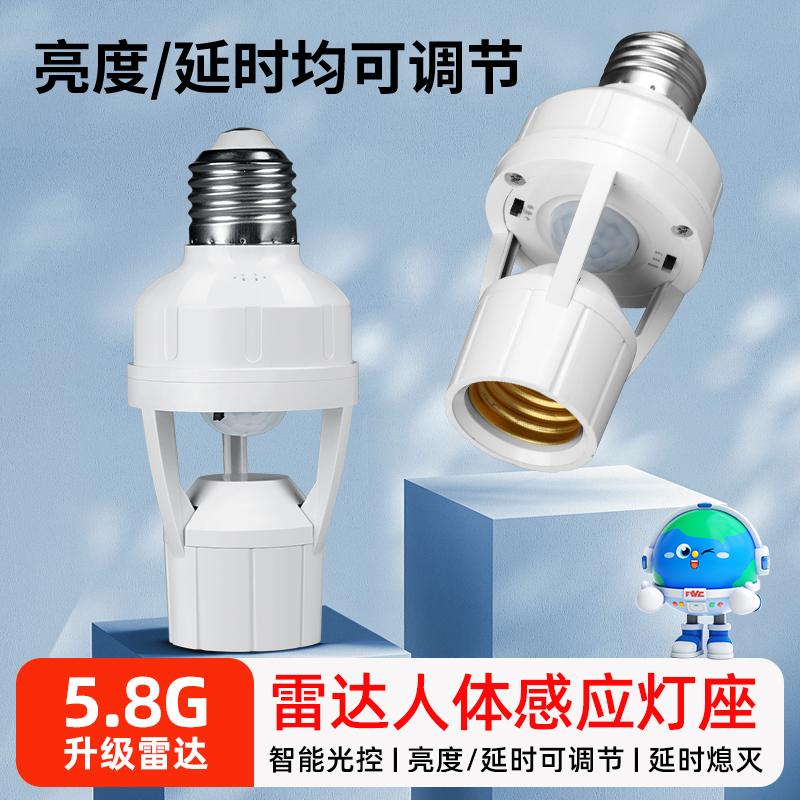 红外线人体感应灯座E27螺口雷达灯头灯口夜间楼道自动感应开关