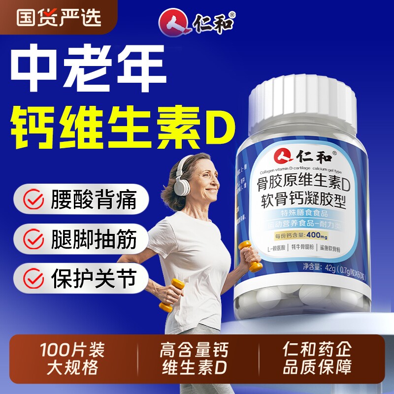 仁和中老年人液体钙片维生素D软胶囊腿抽筋补钙官方旗舰店赖氨酸