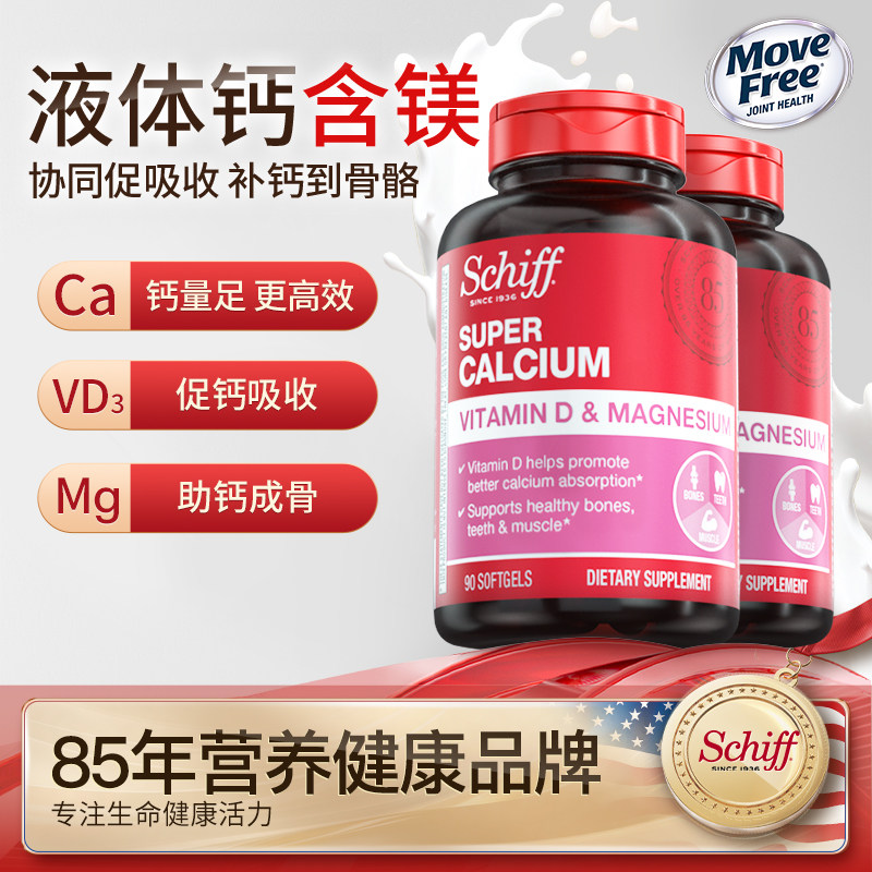 Schiff旭福液体镁钙小分子中老年人补钙软胶囊90粒*2美国进口