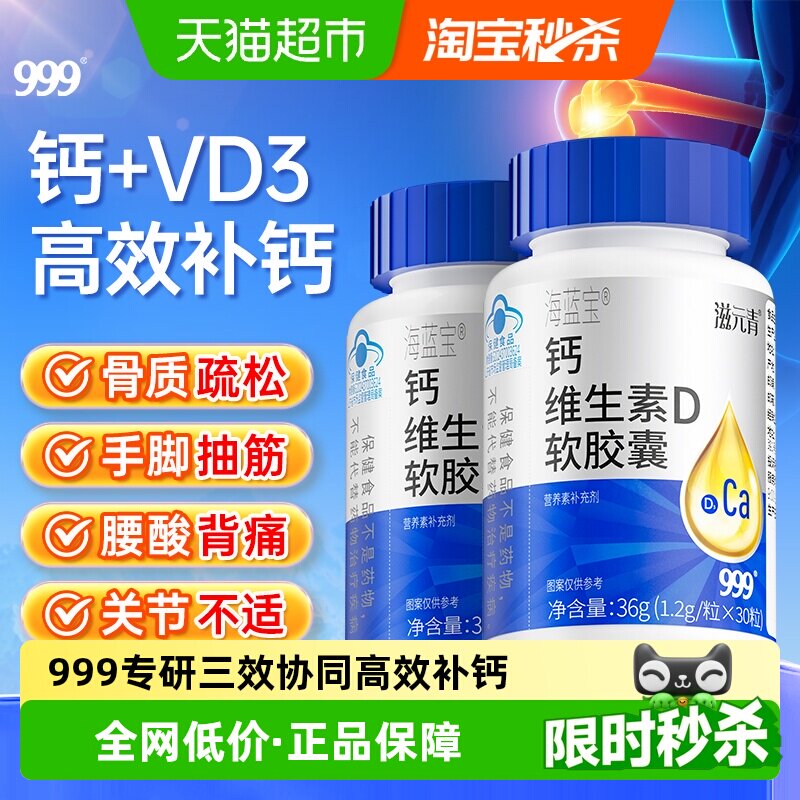 999钙维生素D软胶囊儿童液体钙片孕期哺乳期长青少年高中老年补钙
