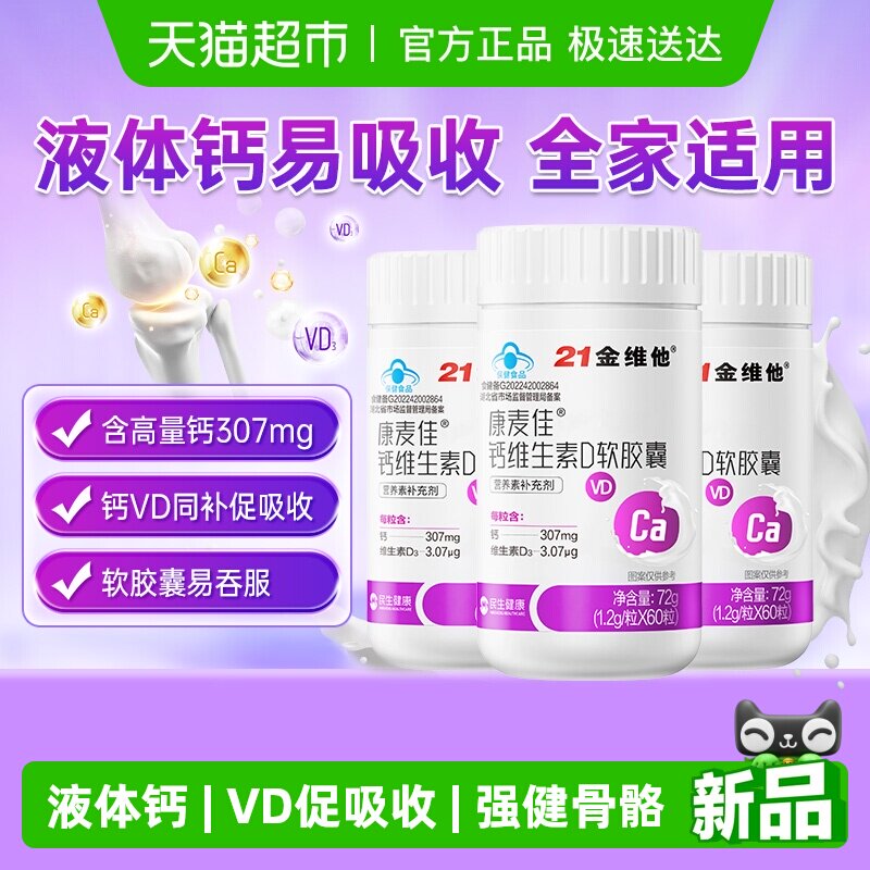 21金维他液体钙维生素d3软胶囊中老年补钙易吸收易吞服全家适用