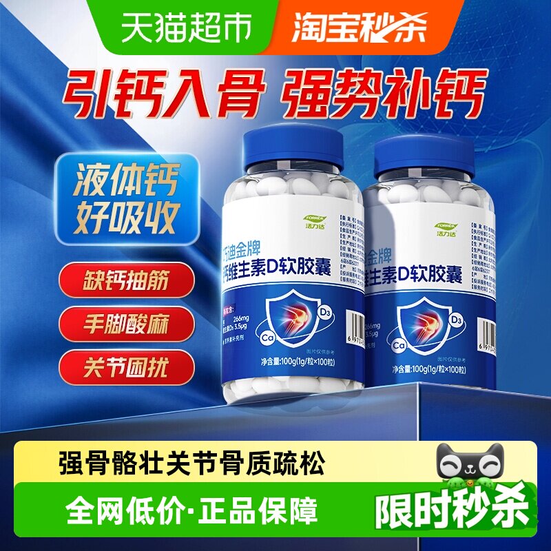 钙D软胶囊维生素D液体钙片碳酸钙腿抽筋中老年成年男女性补钙正品