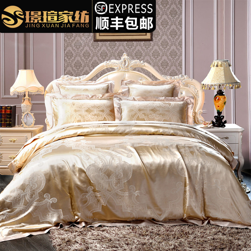 高档轻奢锦缎提花床上用品四件套 欧式贡缎纯棉婚庆六件套床笠款