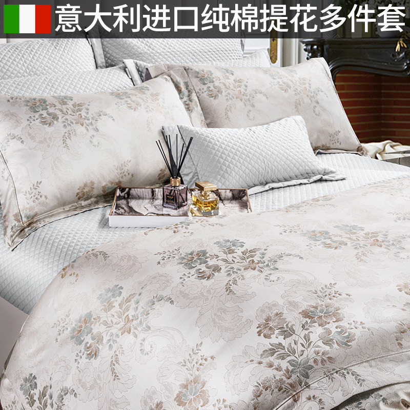 高档轻奢纯棉床上用品六件套欧式奢华贡缎提花全棉四件套高端被套