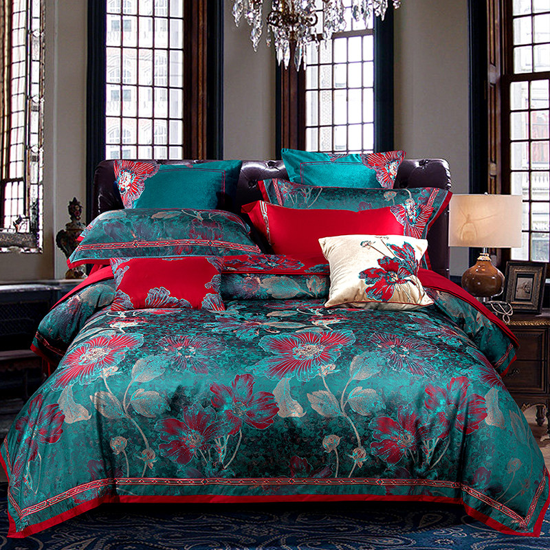 高档锦缎提花床上用品四件套 欧式奢华婚庆六件套中式结婚十件套