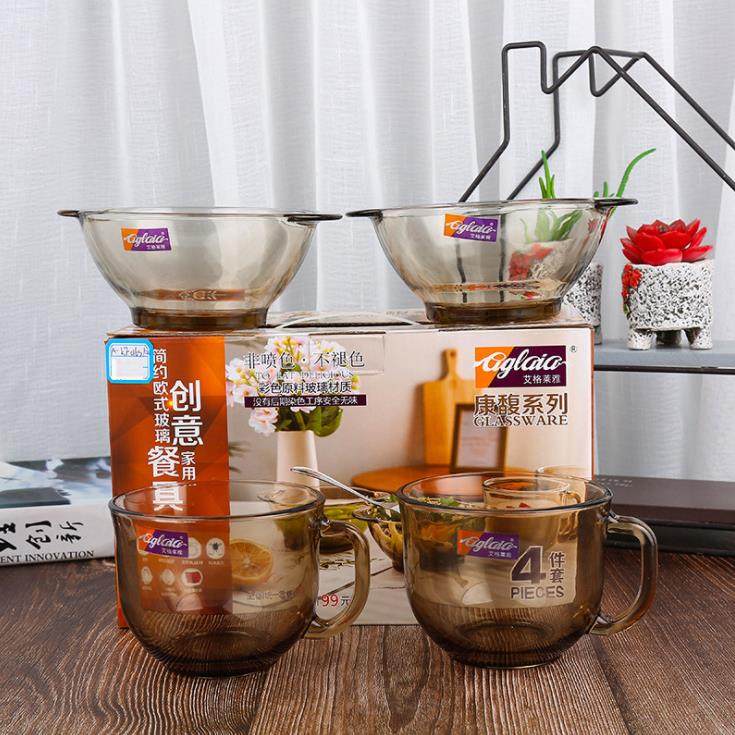 纯色玻璃杯碗套装家用欧式早餐杯二四六件套家用沙拉碗礼盒赠礼品