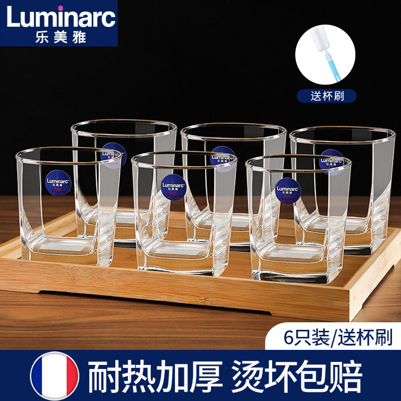 进口欧式家用透明玻璃杯水杯茶杯四方杯啤酒杯无盖喝水杯子六件套