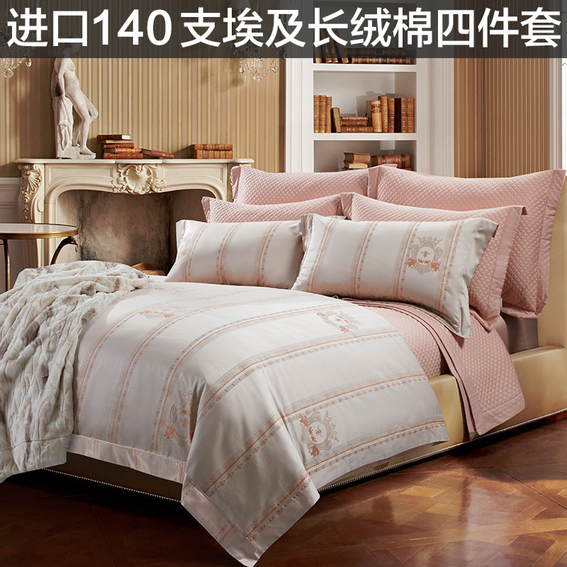 进口全棉四件套欧美风六件套 140支埃及长绒纯棉欧式被罩床上用品