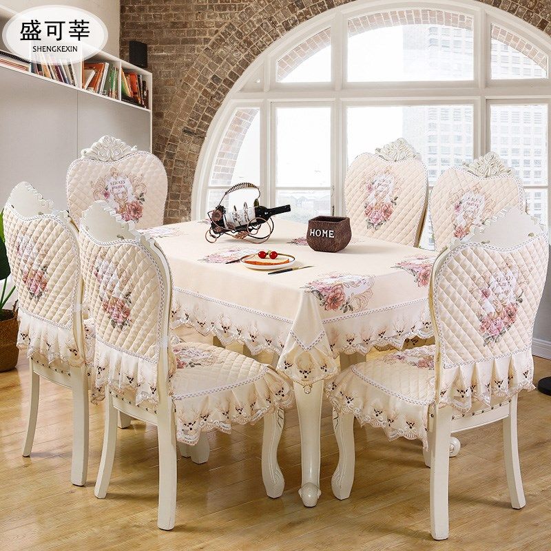 餐椅垫套装欧式六件套布艺家用四季防滑现代简约弧形通用桌椅套罩