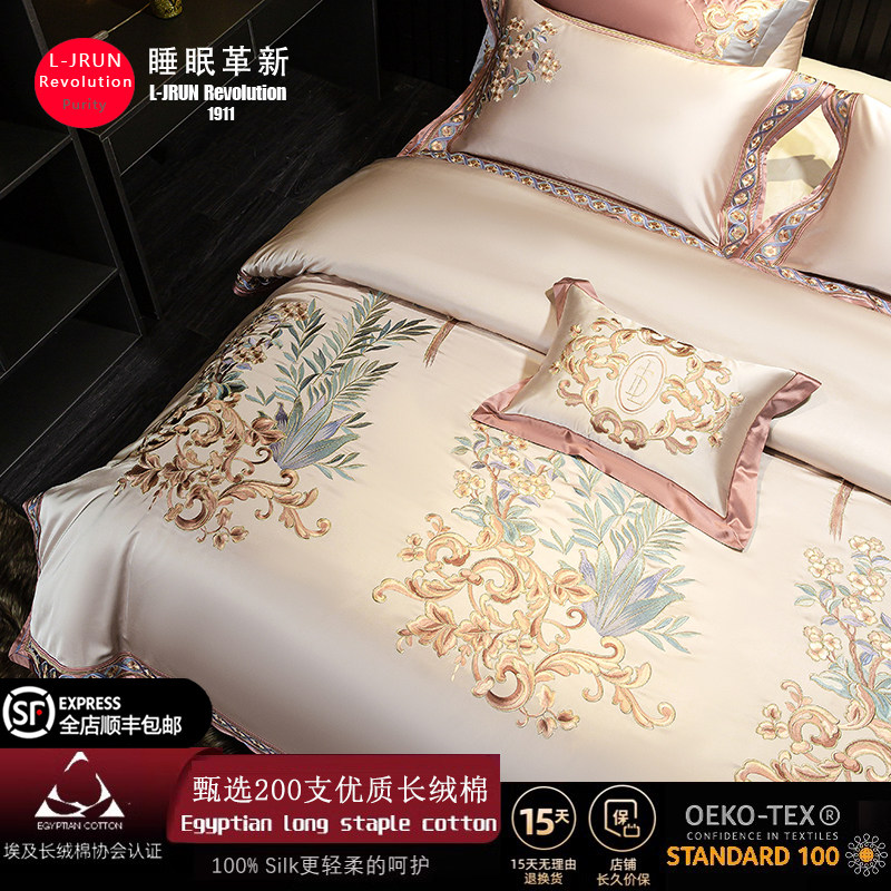 安睡宝欧式真丝棉纯棉床上四件套高端轻奢床单被套六件套春夏床品