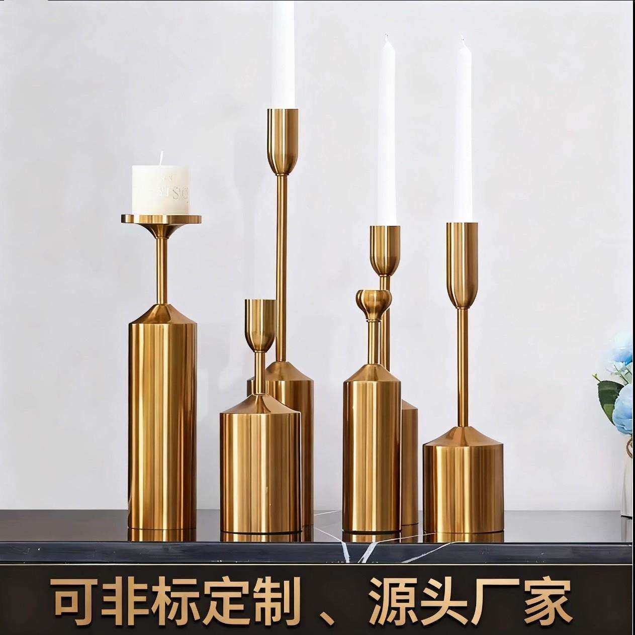 欧式金属浪漫烛台电镀摆件婚庆烛光晚餐道具家居软装工艺品六件套