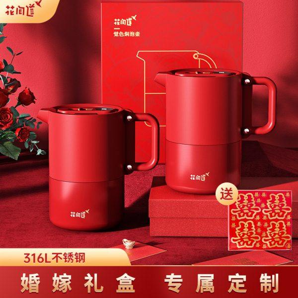 花间道保温壶结婚陪嫁一对热水瓶316不锈钢家用暖壶红色定制水壶