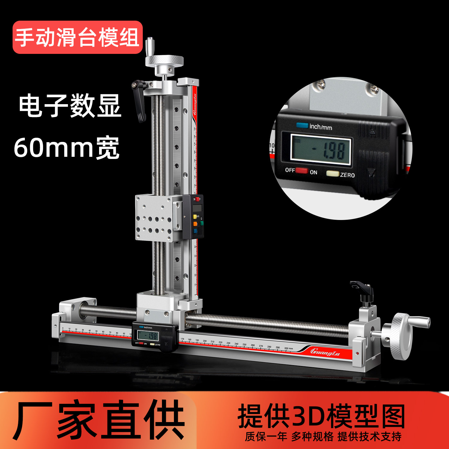 手动滑台直线模组T型丝杆电子数显微调XYZ轴精密导轨带手轮S60-X