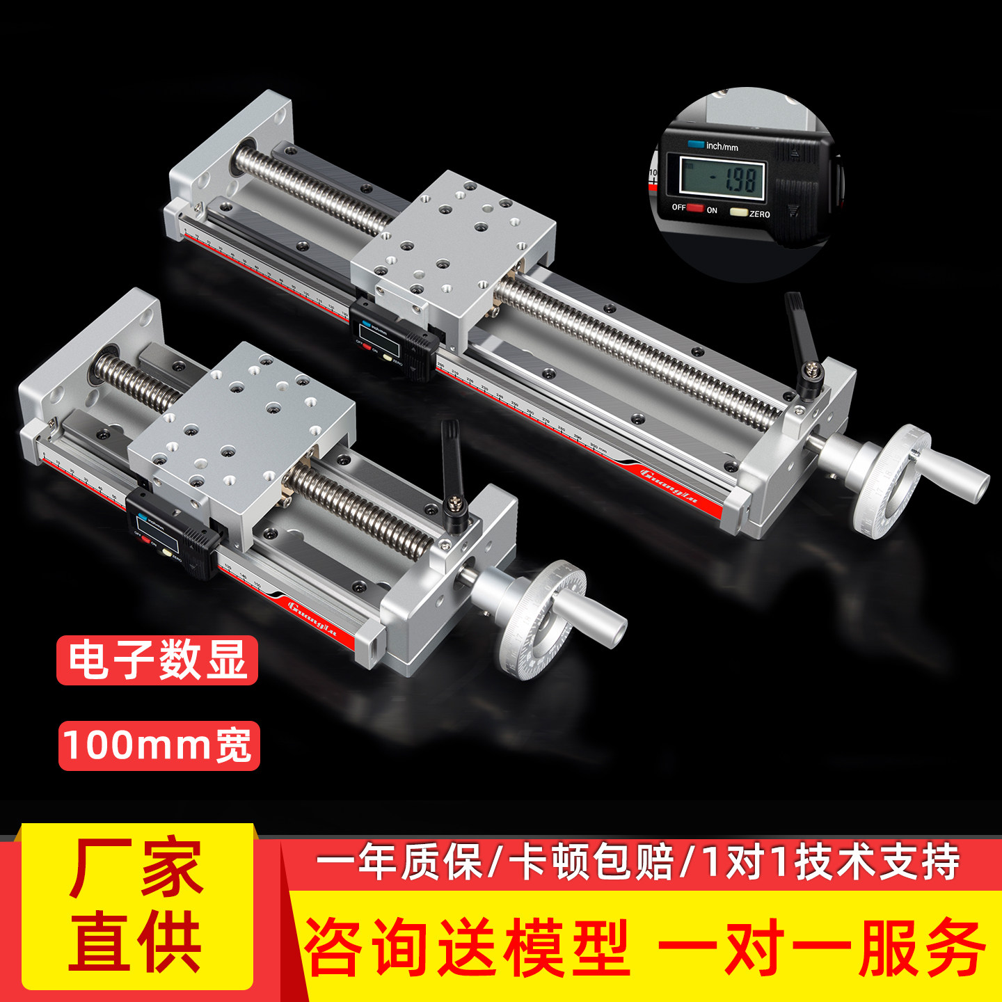 手动滑台直线模组T型丝杆微调电子数显尺十字精密导轨绿牛NS100-D