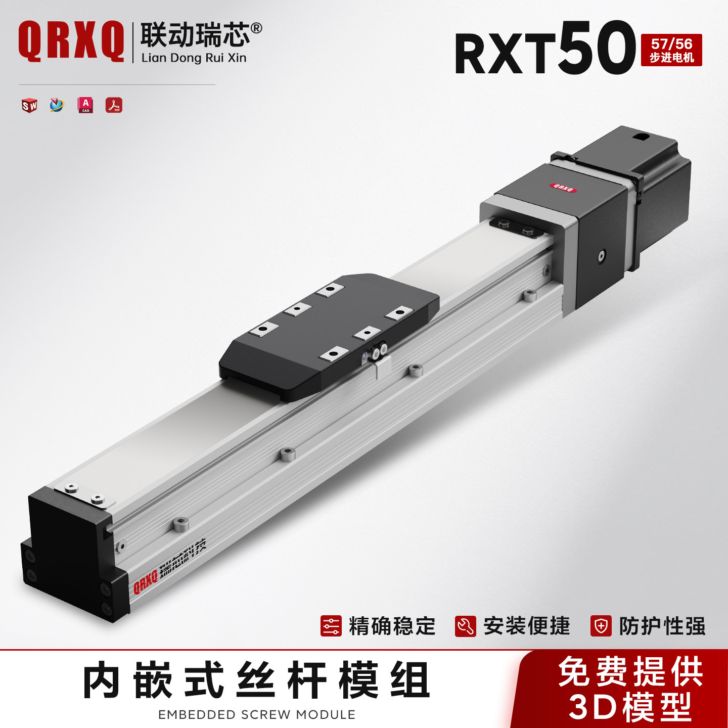 RXT50内嵌式滚珠丝杆线性模组高速静音防尘精密全封闭直线滑台