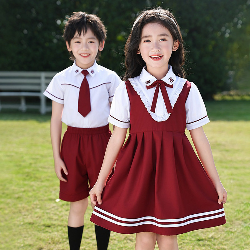 女童英伦风学院红色连衣裙夏季儿童男孩衬衫套装六一小学生合唱服