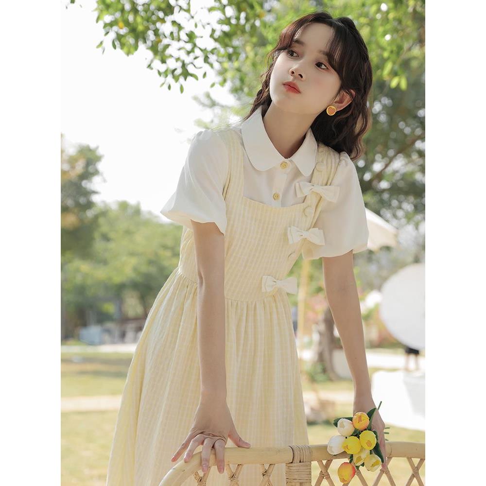 初高中学生学院风连衣裙少女装夏季2025新款法式小个子假两件长裙