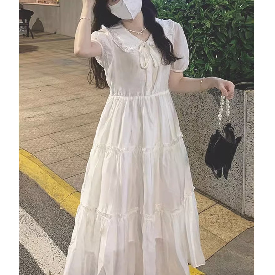 学生学院风白色温柔少女连衣裙女夏季新款夏天奶甜收腰裙子初恋系