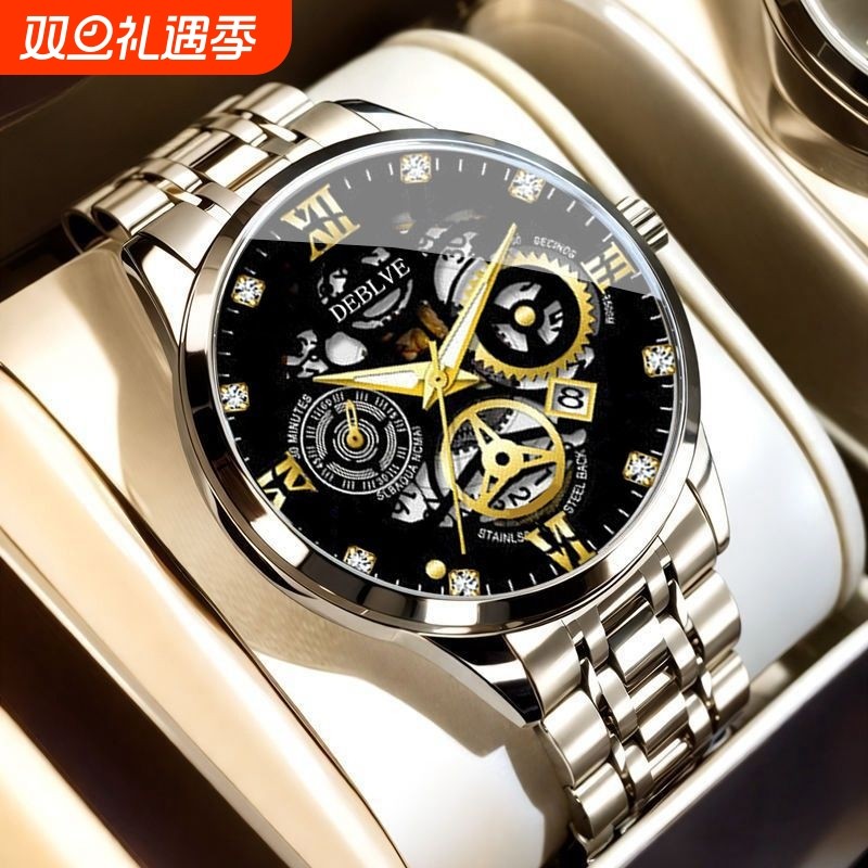老人手表男士爸爸女款情侣表防水老年人钢带石英表瑞士男款机械表
