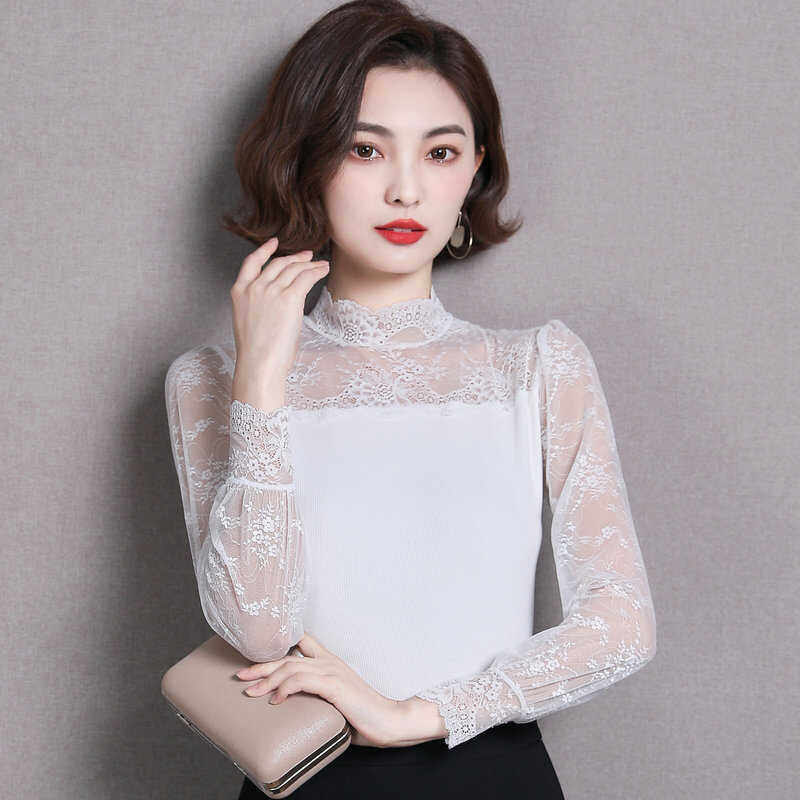 - 高领蕾丝衫女长袖
