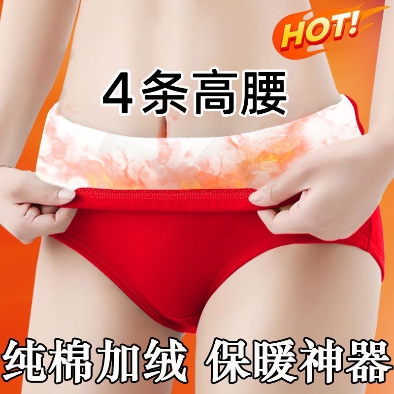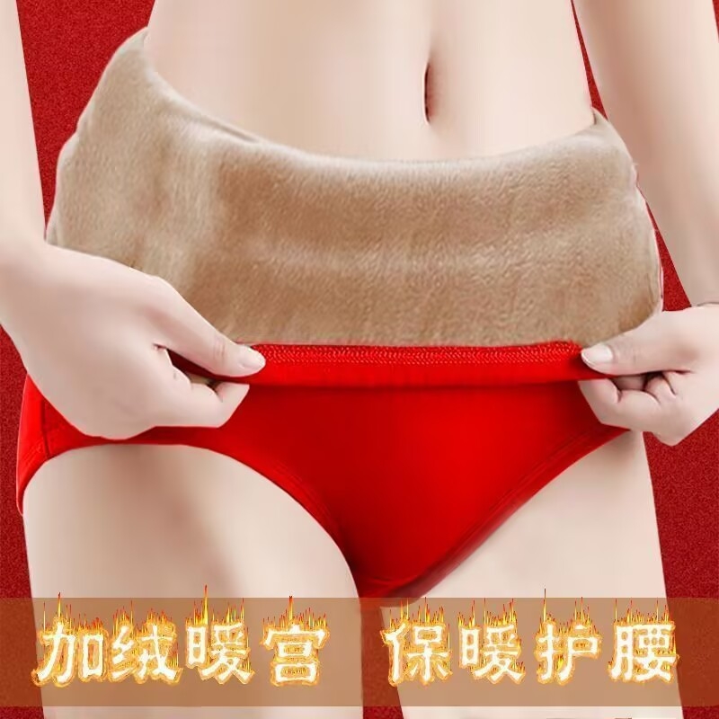 德绒保暖内裤女本命年红色加绒加厚发热抗菌暖宫暖屁股大码平角裤