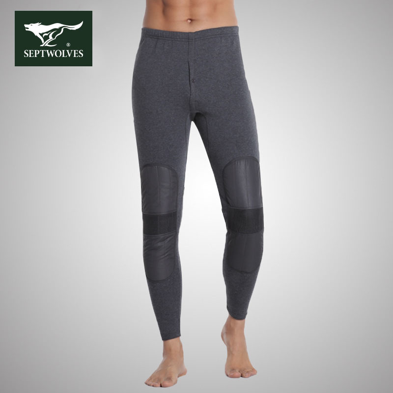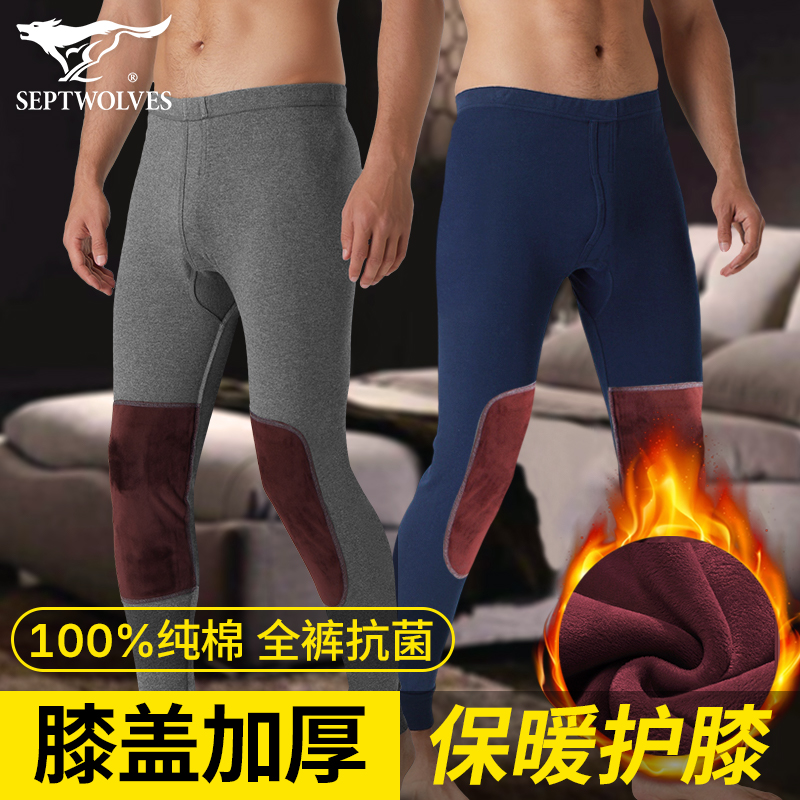 七匹狼保暖内裤加厚加绒冬季穿男士带护膝防寒棉裤毛秋裤膝盖加厚
