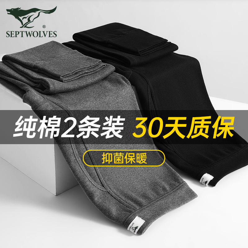 七匹狼男士秋裤纯棉保暖内裤男生冬季打底大码衬裤100%全棉毛线裤