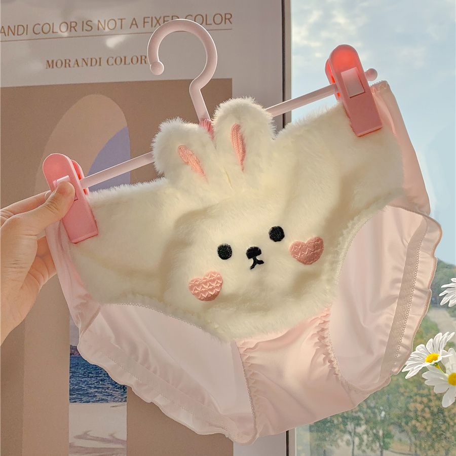 雪绒奶兔~女士甜美纯欲少女保暖内裤女生可爱毛绒纯棉中腰女短裤