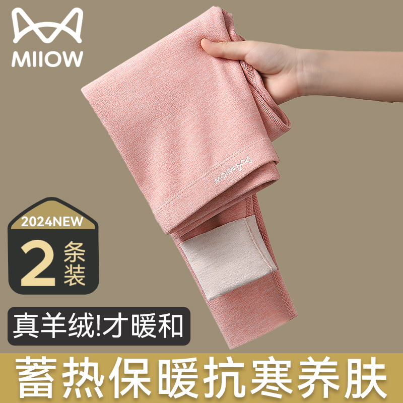 猫人德绒秋裤女款2025新款加绒加厚羊绒打底内穿保暖内裤女士冬季