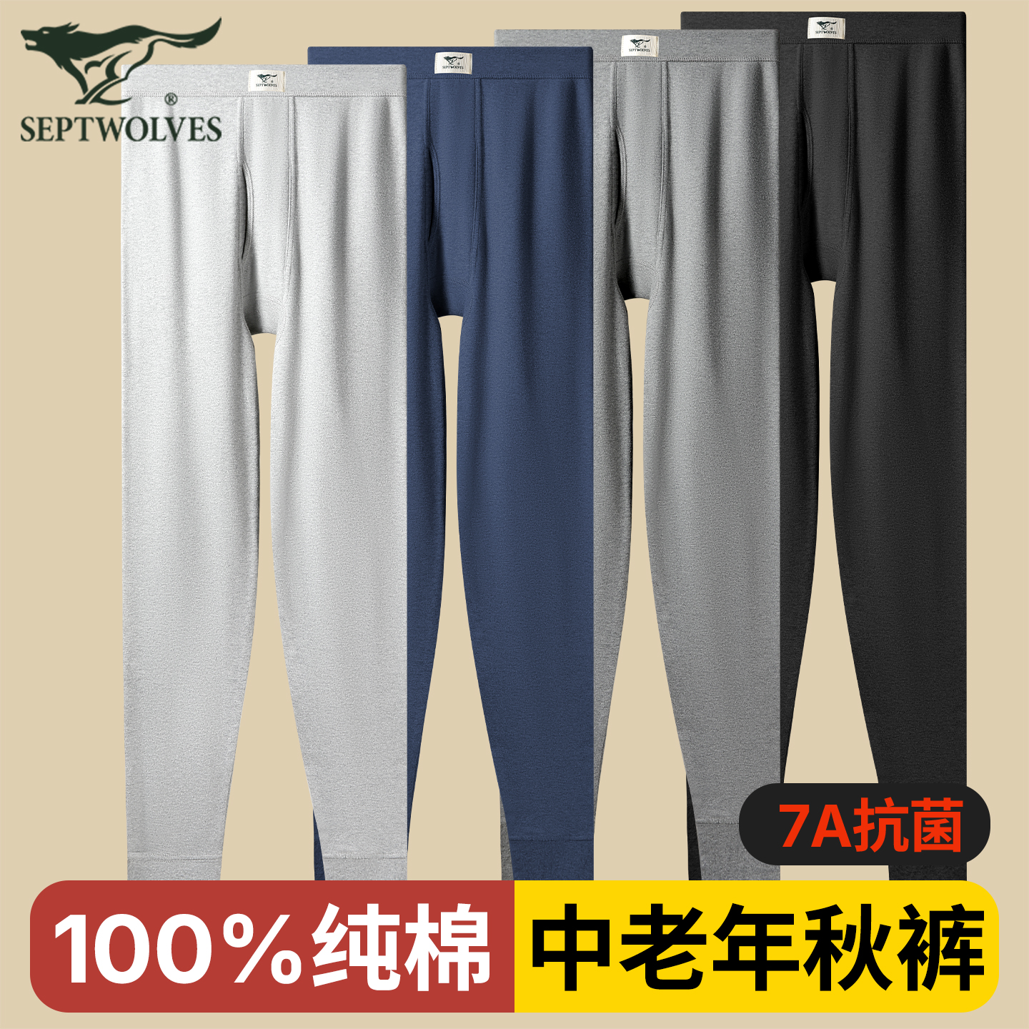 七匹狼中老年男士秋裤男款纯棉线裤爸爸宽松保暖内裤全棉打底衬裤