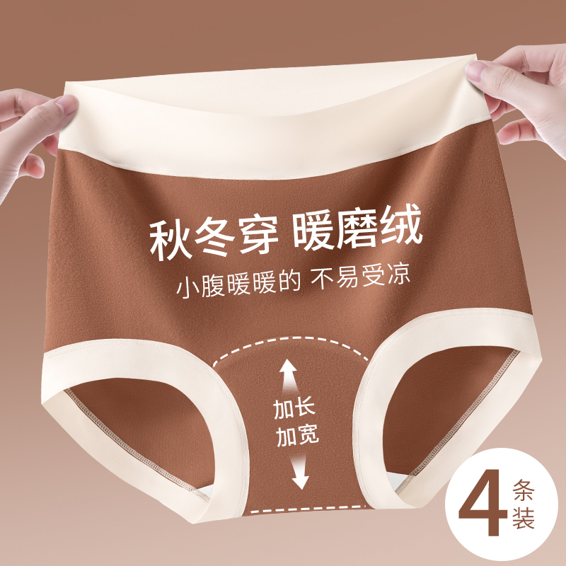 德绒发热保暖内裤女士纯棉抗菌加长裆高腰加绒冬季磨毛暖宫三角裤
