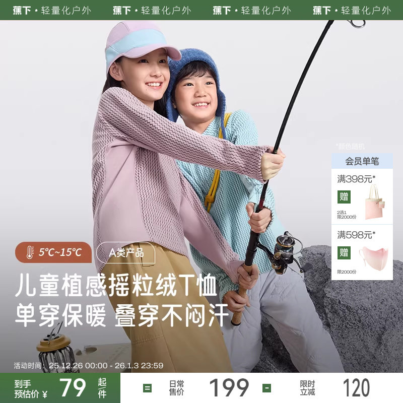 蕉下儿童打底衫长袖摇粒绒上衣加绒保暖户外速干女童卫衣T恤内搭