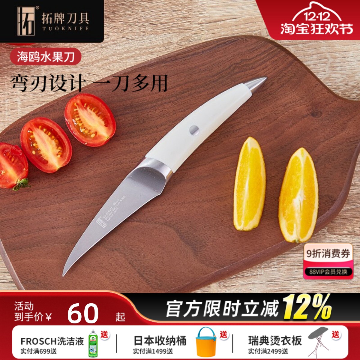 拓牌刀具墨鱼水果刀德国进口不锈钢多功能万用刀家用瓜果削皮小刀