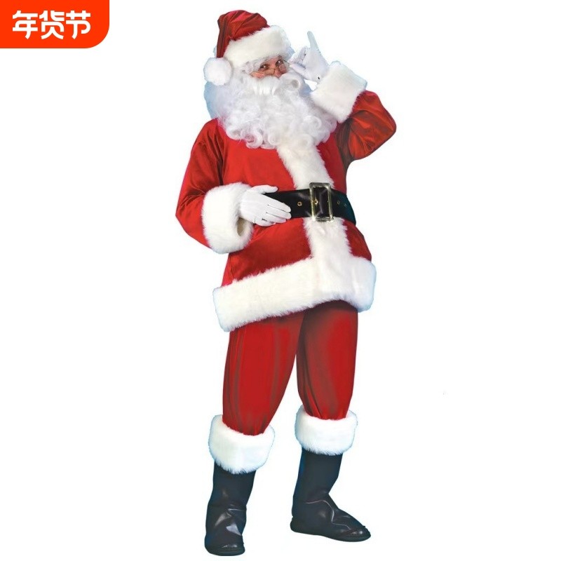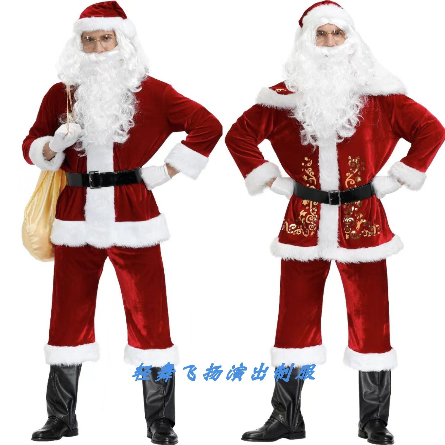圣诞节圣诞老人服装男士大码金丝绒圣诞老公公衣服表演装扮演出服
