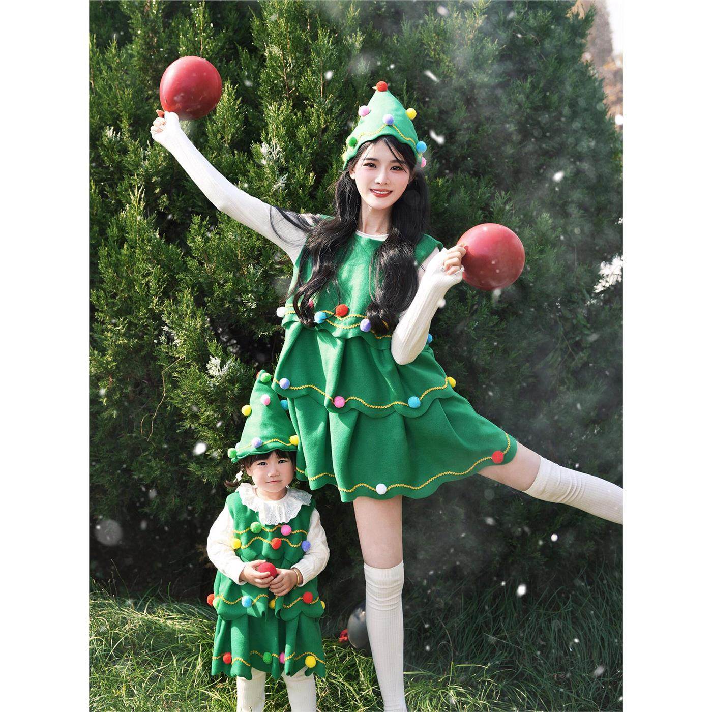 直销 儿童圣诞节服装绿色精灵圣诞服装cosplay亲子装成人男女定制