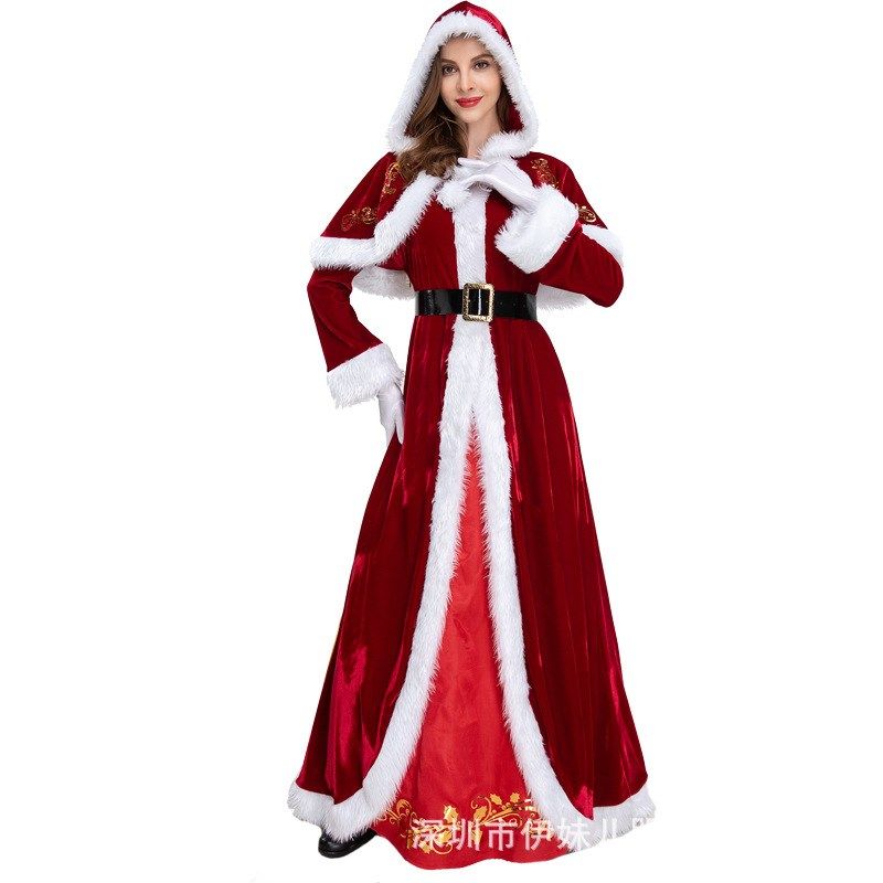 圣诞服装服饰成人女童圣诞披风披肩斗篷圣诞老人演出表演服金丝绒