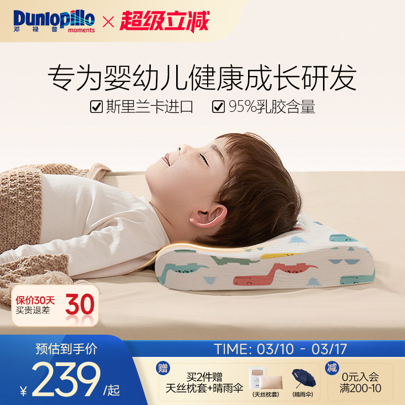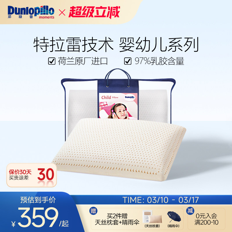 DUNLOPILLO/邓禄普天然乳胶枕进口儿童枕头护颈宝宝定型枕0-12岁