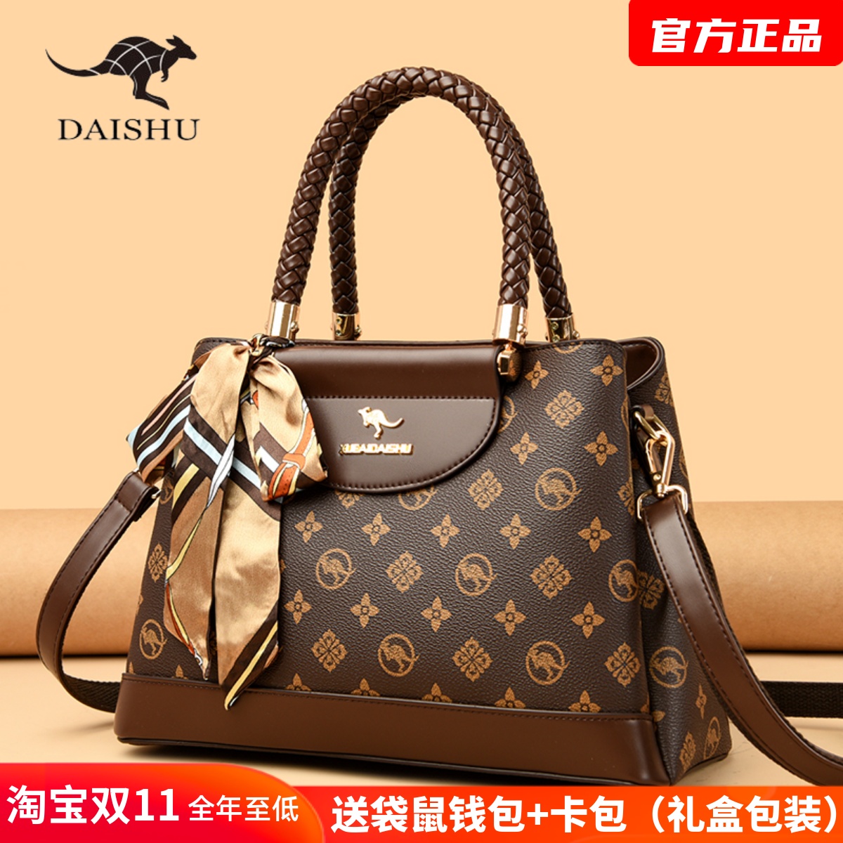 品牌袋鼠时尚手提包女包包新款2025旗舰店真皮包斜挎包中年妈妈包
