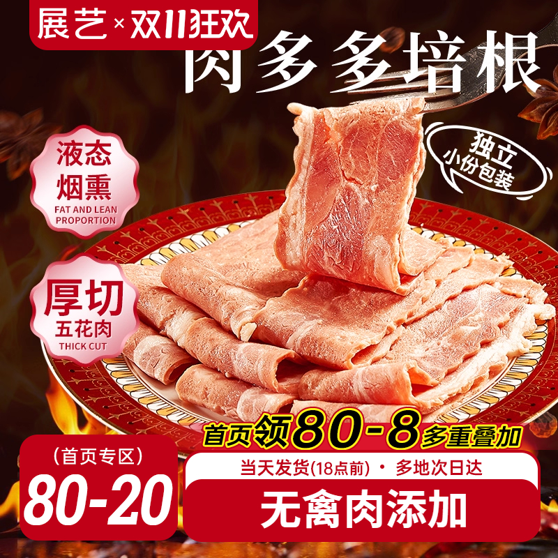 展艺肉多多培根披萨火腿片手抓饼早餐专用美式厚切雪花商用旗舰店