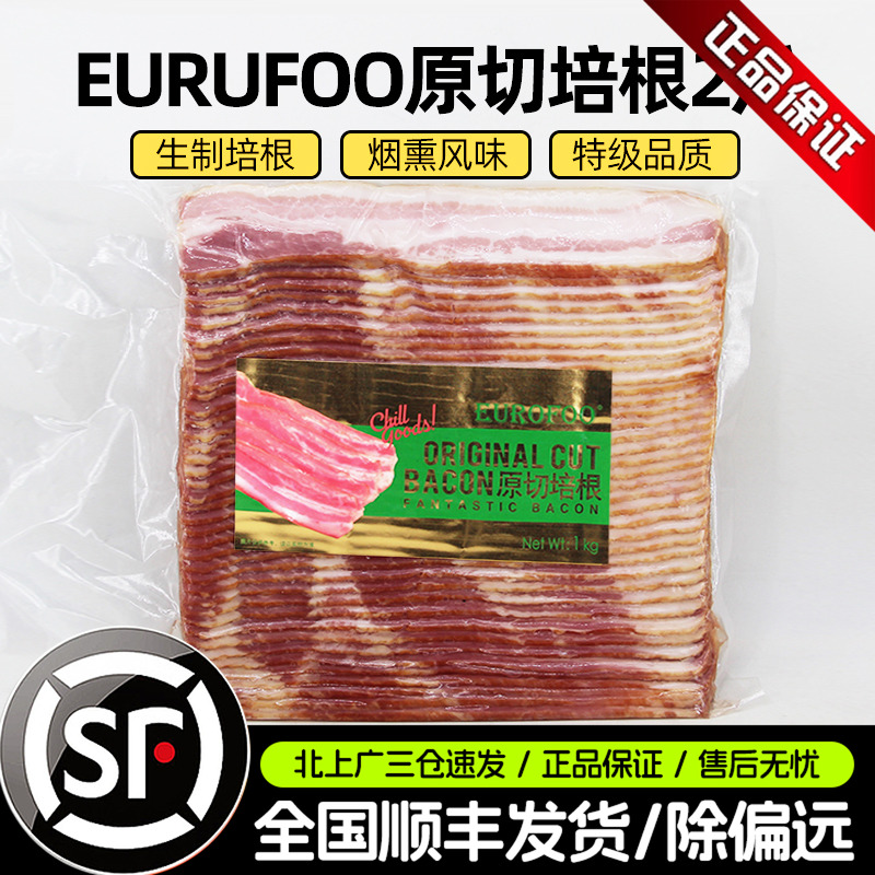 EUROFOO原切培根1KG烟熏风味生制培根切片三明治汉堡早餐火锅商用