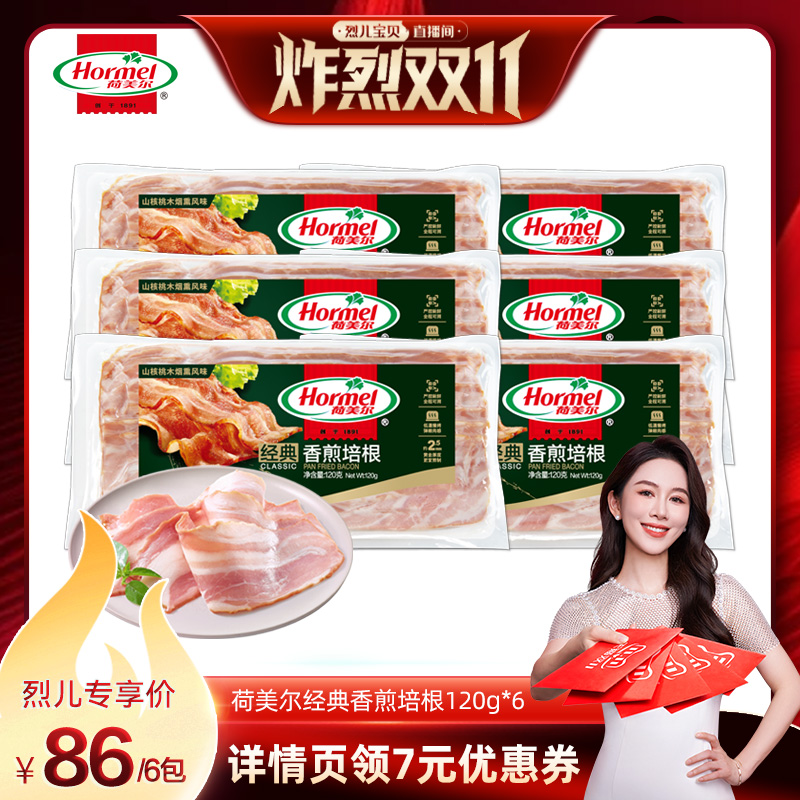 【先加购!15号20点付定金】荷美尔经典香煎培根120g*6