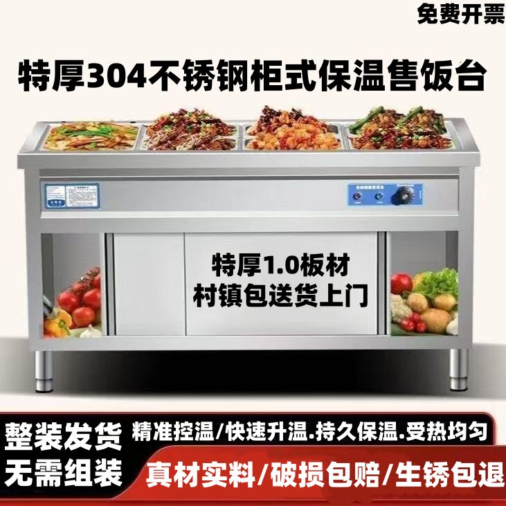 特厚304不锈钢柜式保温售饭台食堂电加热保温台学校菜品保温汤池