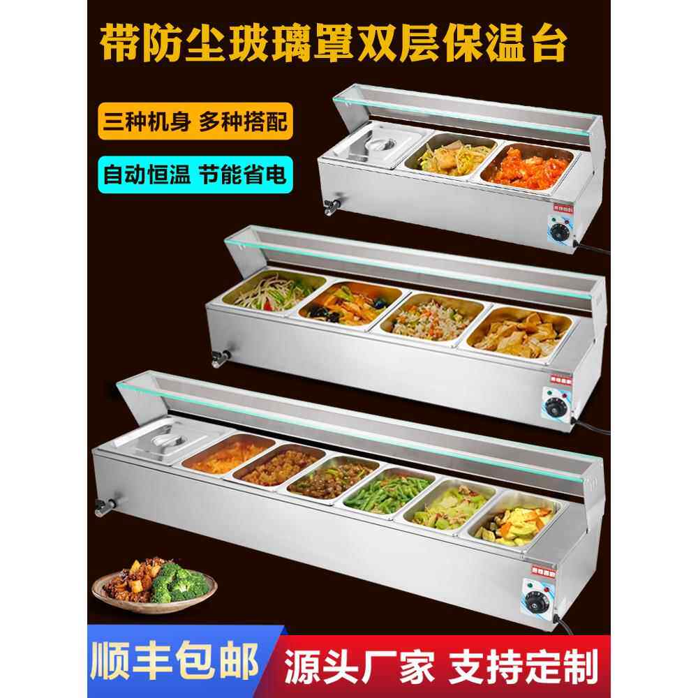 保温售饭台商用快餐车玻璃罩加热不锈钢保温汤池蒸菜台快餐保温台