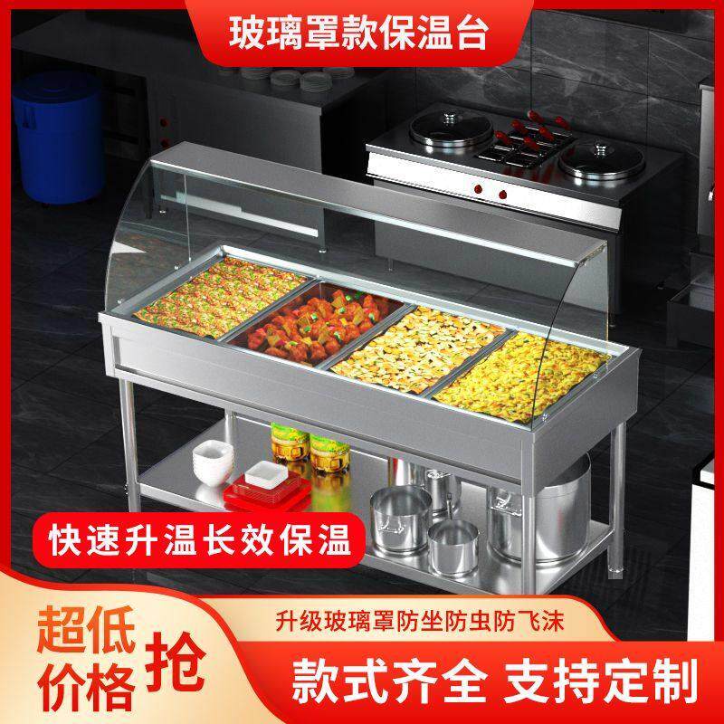 食堂不锈钢售饭台台式商用保温台快餐店加热电热保温汤池餐台玻璃