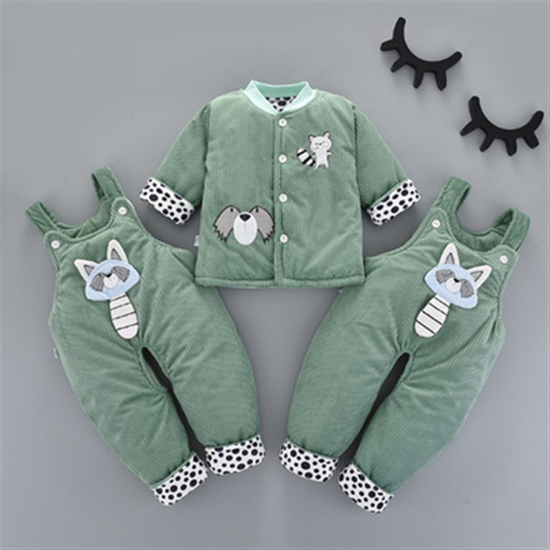 男女宝宝秋冬装婴儿棉衣袄三件套装加厚0-1岁3个月6双背带裤冬季5
