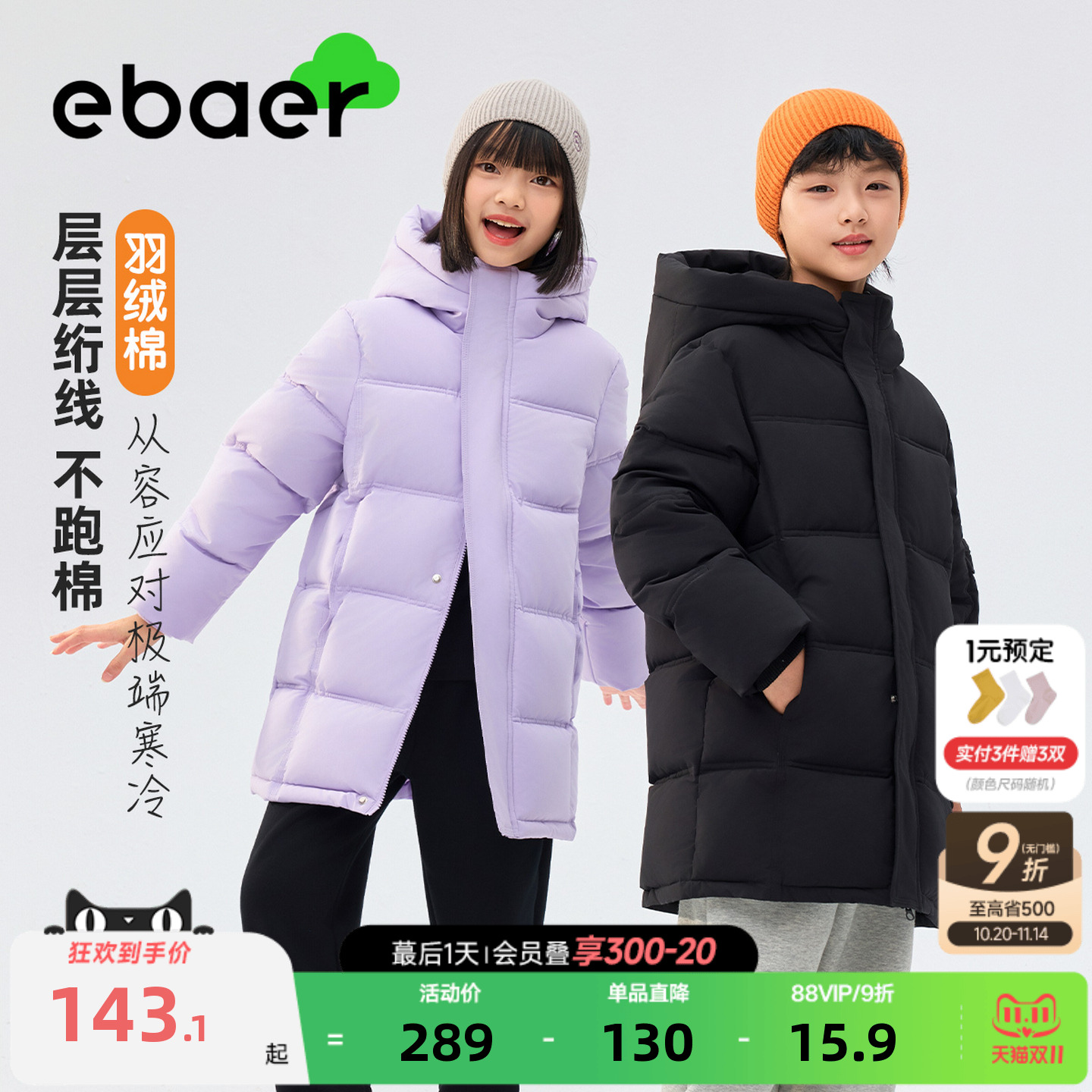 【双11预售】ebaer儿童加厚中长款棉服2025冬新款男女童保暖外套
