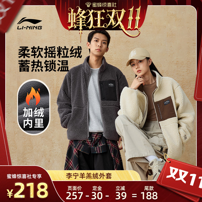 [蜂狂双11]李宁摇粒绒外套男女夹克抓绒立领保暖棉服复古夹克防风